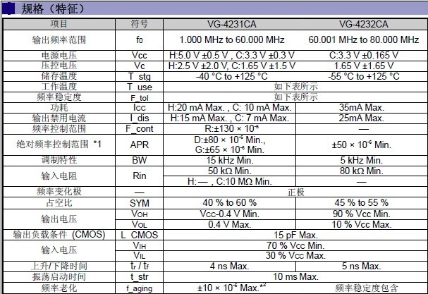 愛普生振蕩器VG4232CA規(guī)格
