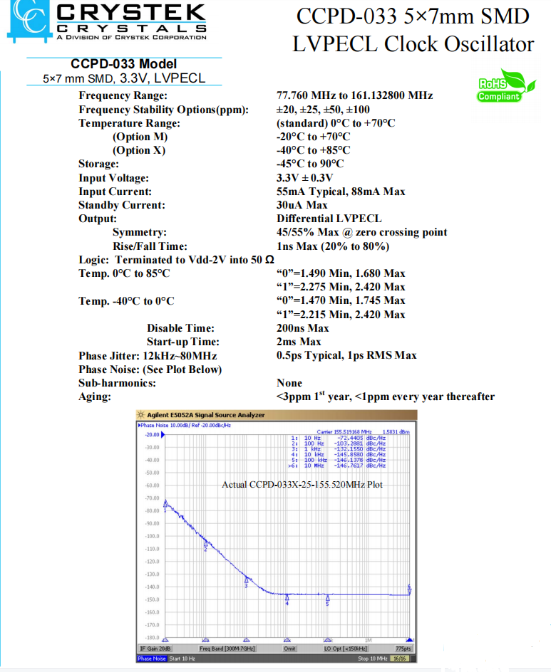 | CCPD-033X-50-155.520 | Crystek晶振 | CCPD-033 | XO (Standard) | 155.52MHz | ±50ppm |