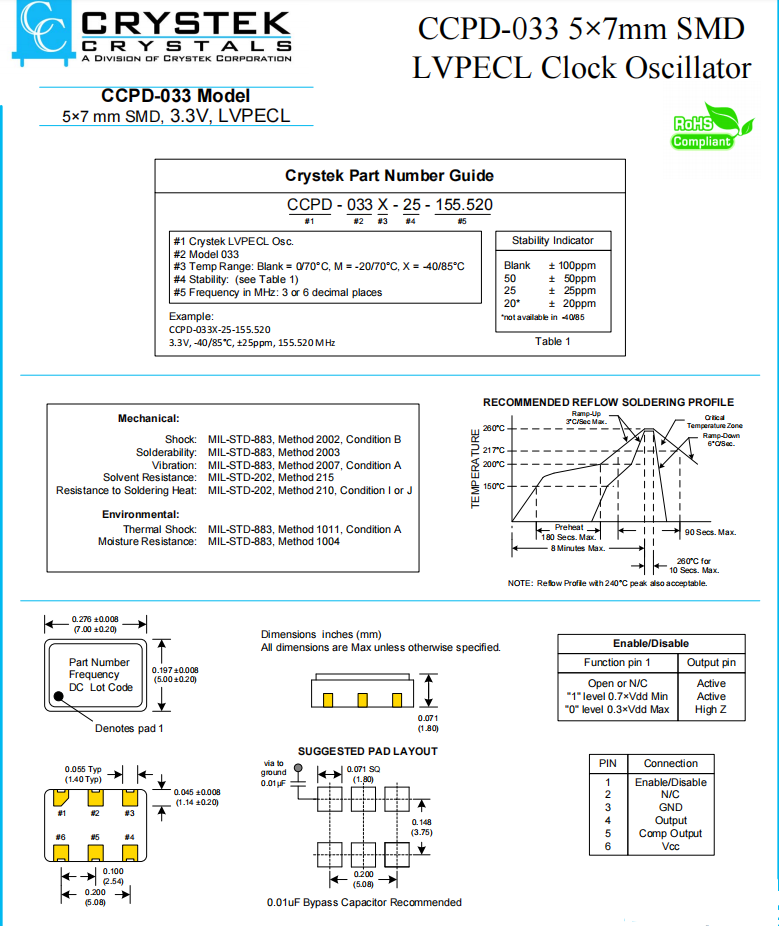 | CCPD-033X-25-125 | Crystek晶振 | CCPD-033 | XO (Standard) | 125MHz | ±25ppm |