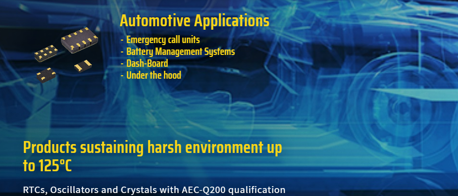 These XTAL products address market requests for low power timing devices like oscillators or microcontrollers, high reliability, extended operating temperature and automotive qualification according to AEC-Q200.