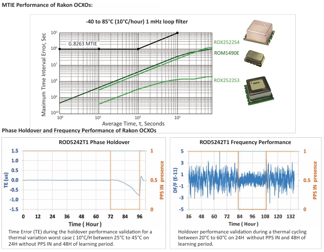 Rakon 已經(jīng)表征了在不斷變化的環(huán)境條件下,在各種環(huán)路帶寬下與分組網(wǎng)絡(luò)、MTIE 和 TDEV 性能相關(guān)的環(huán)路時間段的各種類型的振蕩器。
